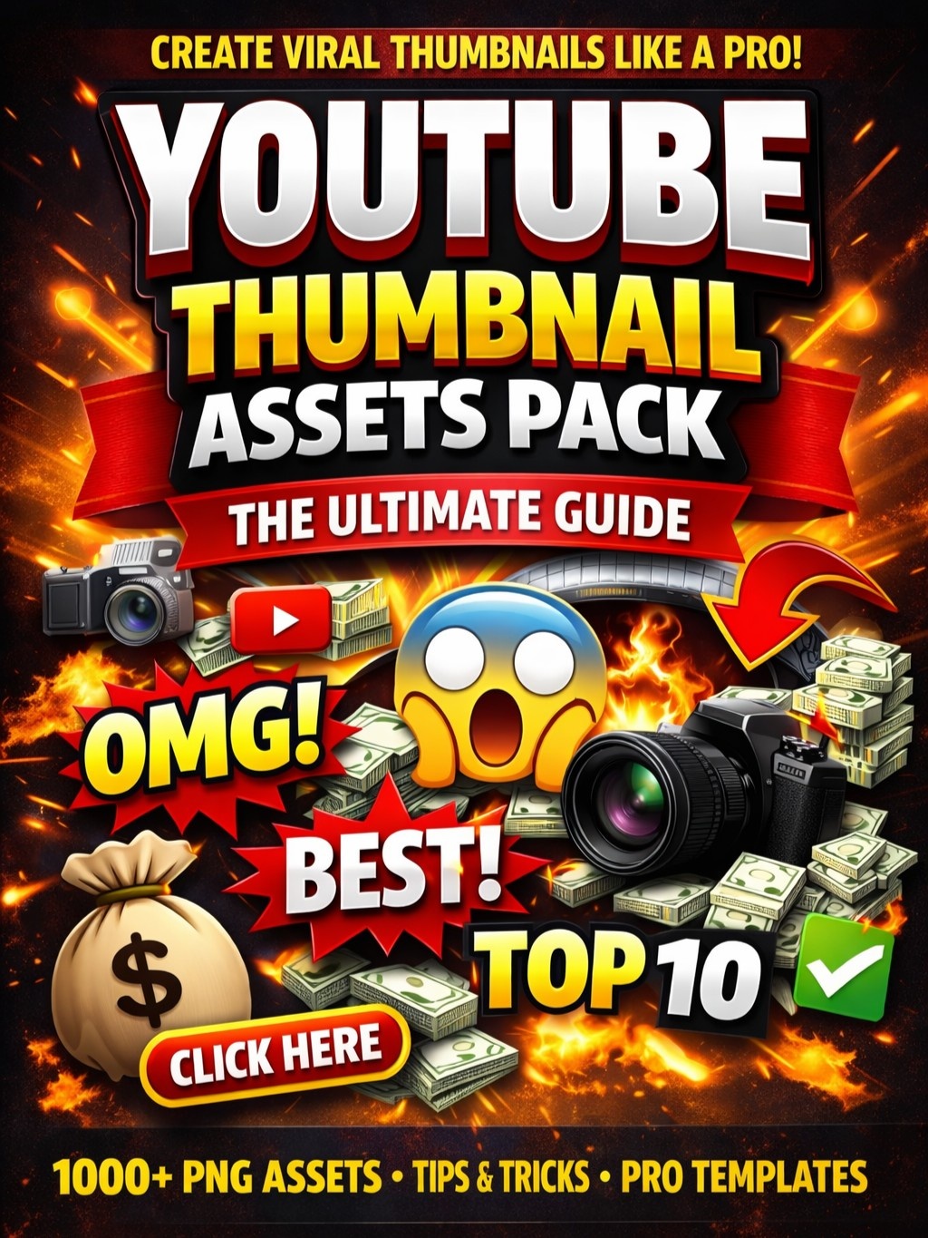 Create eye-catching, high-CTR thumbnails in minutes with this powerful YouTube Thumbnail Assets Pack. Designed for YouTubers, editors, gamers, and designers, this pack gives you everything you need to make your thumbnails stand out and get more clicks.